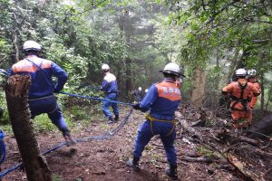 令和7年10月15日(水)つくば市の筑波山山間部において、つくば市消防本部との合同山岳救助訓練を実施しました。 この訓練は、管轄区域の境界を越えて連携の強化を図ることを目的に実施されました。本合同訓練を通して、各隊の技術の習得、情報の交換、顔の見える関係を構築することができました。
